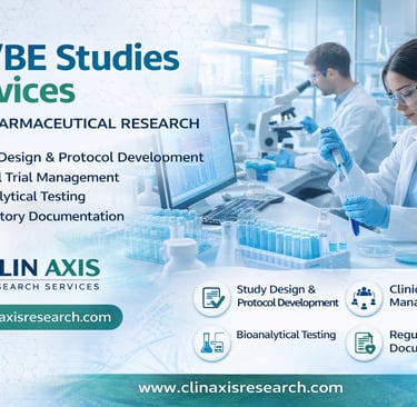 Clin Axis Research Services provides comprehensive BA/BE studies services to support pharmaceutical companies in drug development, regulatory approval, and clinical research programs.